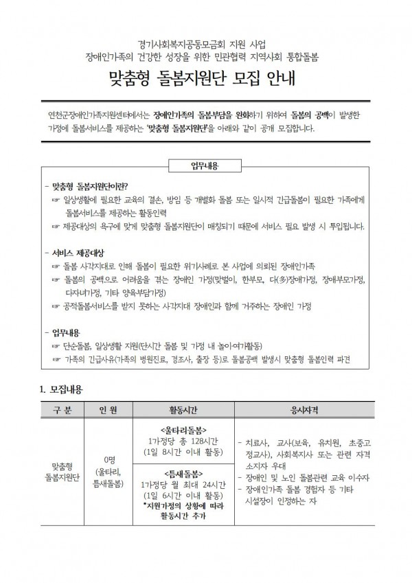 공지 [모집] 맞춤형 '돌봄 지원단' 모집 안내