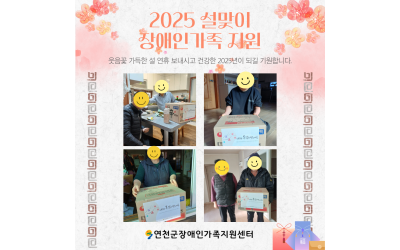 연천군장애인가족지원센터에서는 2025년 추석 명절을 맞이하여 장애인가족 분들이 밝고 풍성한 명절 연휴를 보내실 수 있도록후원물품을 전달하고 안부 인사를 나눴습…