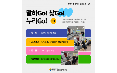 우리 연천군장애인가족지원센터에서는 성인 발달장애인을 대상으로 양성의 권익증진을 위한 자기결정권 강화 기회 제공을 위하여 2025년 연천군 양성평등기금사…