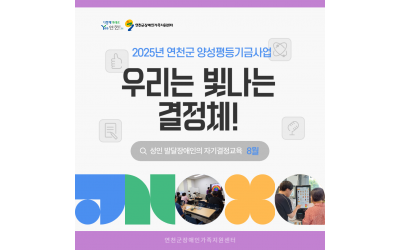 우리 연천군장애인가족지원센터에서는 성인 발달장애인을 대상으로 양성의 권익증진을 위한 자기결정권 강화 기회 제공을 위하여 2025년 연천군 양성평등기금사…